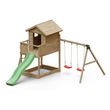 Aire de jeux Galaxy S - Funggo.Nombre maximum d'utilisateurs : 7Bois en Pin Sylvestre Autoclave Classe 3 FSCNorme EN 71Temps de montage : 8 heures à 2 personnesGarantie : 10 ansÉquipement :Un toboggan vert, mesurant 2,2 m.Une échelle à barreaux métalliques.Un portique doté de 2 balançoire rouges av