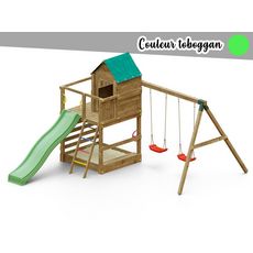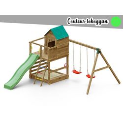 Aire de jeux Jarcas avec balançoire double - Toboggan Vert - Fungoo