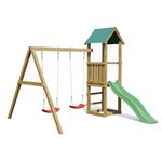 Aire de jeux en bois Lucas avec balançoire double de la marque FungooToboggan vert de 1,75 mAncrages au solCapuchonsÉchelleKit bois completEnsemble de connecteurs métalliques Ensemble d'outils d'installation Instructions d'installation étape par étape avec les règles de sécurité Kit de crochets po