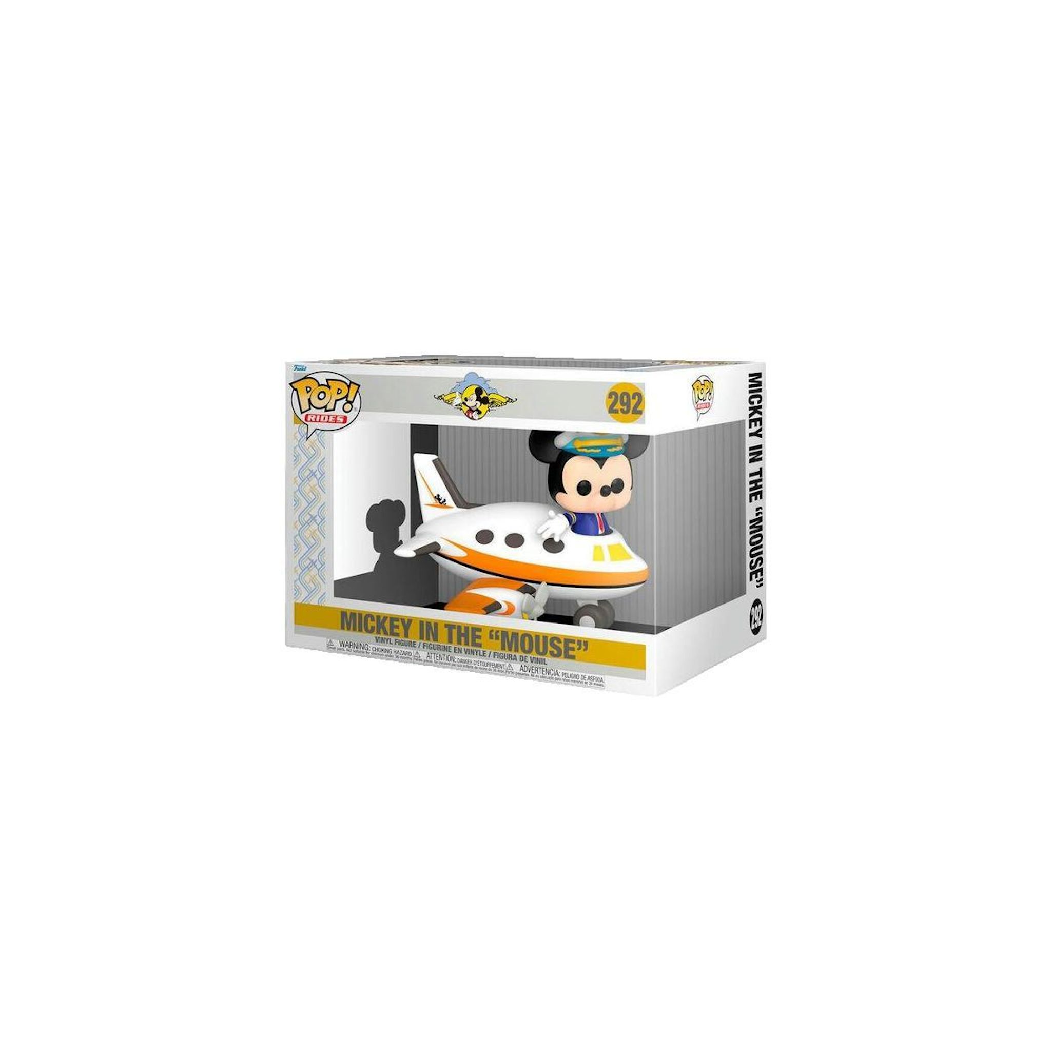 Découvrez la figurine Funko Pop! Rides Mickey Mouse de la marque Funko, une pièce de collection colorée et joyeuse représentant Mickey Mouse pilotant un avion. Cette figurine est fabriquée en vinyle durable, mesurant 5,5 pouces (14 cm), idéale pour les fans de Disney et les collectionneurs. Sa boîte