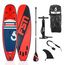 La construction en Dropstitch et le PVC apportent solidité et une grande résistance aux chocs. Il se gonfle en quelques minutes (5 à 8 minutes) avec une pompe manuelle et se transporte facilement avec les accessoires dans un sac.