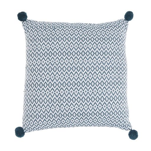 Notre coussin Holi bleu avec des motifs brodés blancs offrira à votre fauteuil, canapé ou lit, une touche en plus qui réveillera votre décoration. Ce coussin avec ses motifs graphiques et ses pompons donnera du relief à votre intérieur.