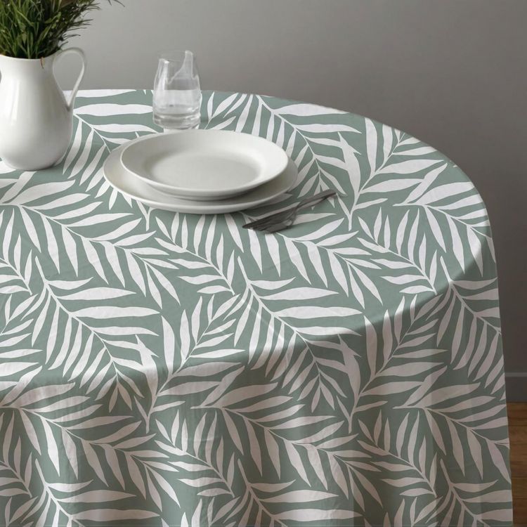 Nappe ronde en coton imprimé feuillageApportez une touche de fraîcheur et d'élégance naturelle à votre table avec la nappe VERA en coton imprimé, ornée d'un motif végétal raffiné dans des tons apaisants. Parfaite pour sublimer vos repas du quotidien ou vos occasions spéciales, elle marie esthétique