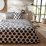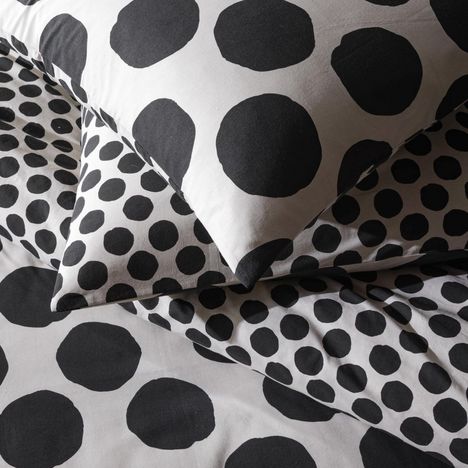 Parure de lit en coton réversible imprimé pois 57 fils noir comprenant 1 housse de couette + 2 taies d'oreiller 63x63cm.