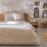 Parure de lit 2 personnes en coton 57 fils imprimé beige