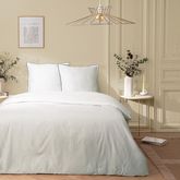 La parure de lit en satin de coton associe confort et raffinement grâce à sa texture soyeuse et son éclat subtil, qui ajoutent une note de luxe à votre chambre. Naturellement respirant et hypoallergénique, le satin de coton est idéal pour les peaux sensibles et garantit une excellente régulation thermique, assurant ainsi des nuits douces et agréables.