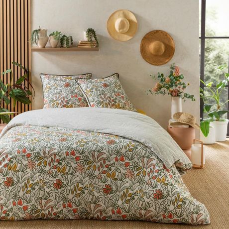 Parure de lit en coton réversible imprimé floral 57 fils multicouleurs comprenant 1 housse de couette + 2 taies d'oreiller 63x63cm.