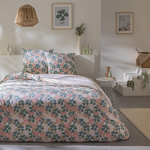 Parure de lit en coton réversible imprimé floral 57 fils multicolore comprenant 1 housse de couette + 2 taies d'oreiller 63x63cm.