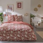 Parure de lit en coton réversible imprimé floral 57 fils terracotta comprenant 1 housse de couette + 2 taies d'oreiller 63x63cm.