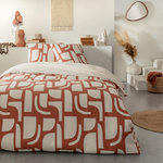 Parure de lit en coton réversible imprimé géométrique 57 fils ocre / terracotta comprenant 1 housse de couette + 2 taies d'oreiller 63x63cm.