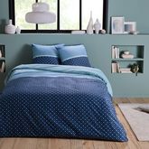 Parure de lit en microfibre réversible imprimé géométrique bleu ROSIE comprenant 1 housse de couette + 2 taies d'oreiller 63x63cm.