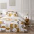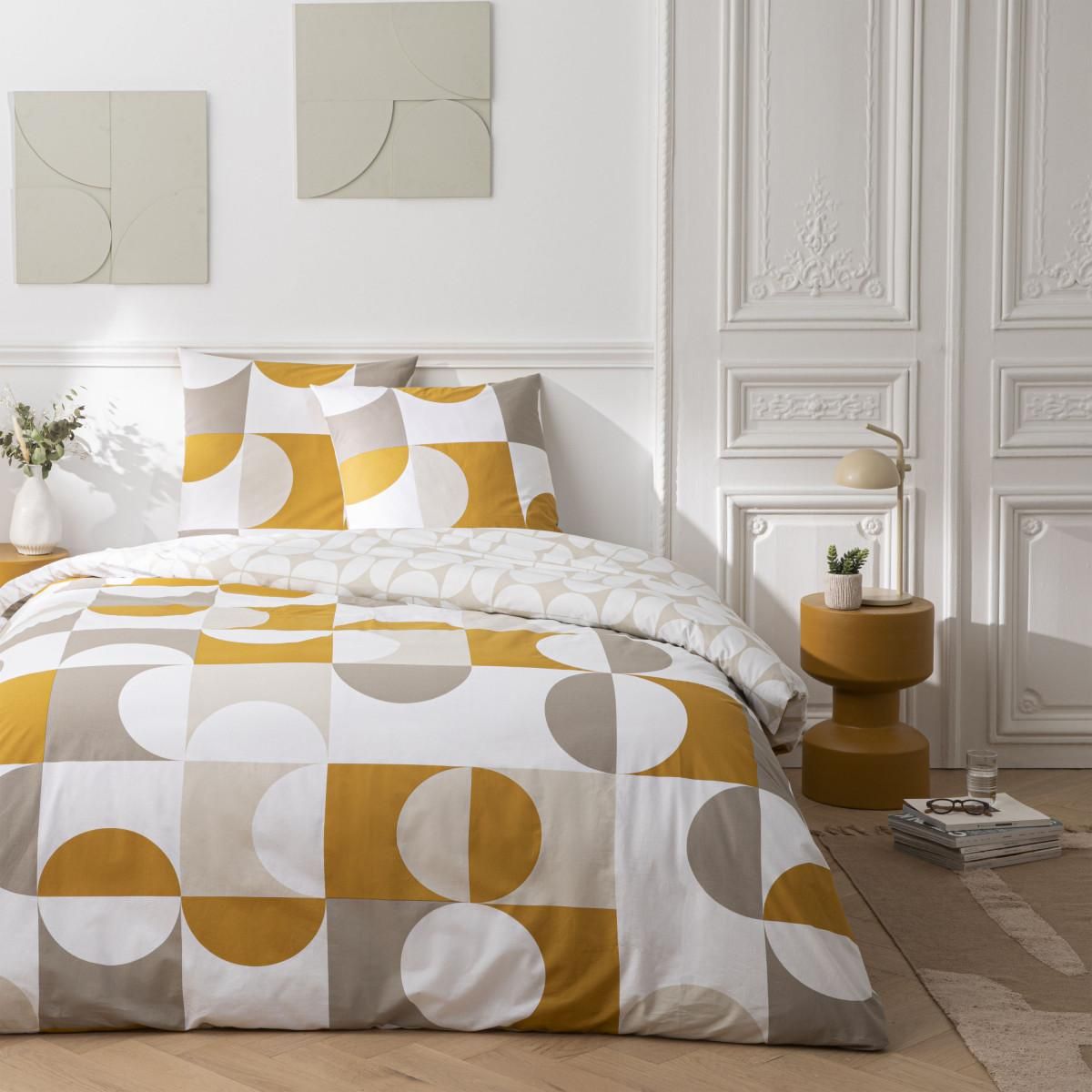 Orné de motifs géométriques aux tons miel, taupe et beige sur un fond blanc, il apporte une touche chic et contemporaine à votre espace. Le design réversible vous permet de changer facilement l'ambiance de votre chambre. Fabriqué en 100% coton de haute qualité, il offre une douceur incomparable pour des nuits paisibles, tandis que son tissage de 57 fils garantit durabilité et confort.