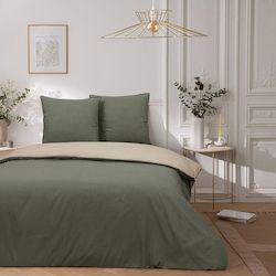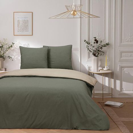 Facile d'entretien, cette parure se lave en machine et s'adapte parfaitement au rythme du quotidien. Les taies d'oreiller assorties, dans les mêmes tonalités bicolores, complètent l'ensemble avec élégance et cohérence. Certifiée Oeko-Tex®, la parure Vicky garantit l'absence de substances nocives pour des nuits sereines et en toute confiance.