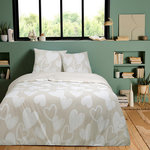 Avec son motif de cœurs blancs délicatement imprimés sur un fond beige, cette parure crée une ambiance douce et chaleureuse, idéale pour une atmosphère cocooning. Son design intemporel s'harmonise facilement avec tout style de décoration, ajoutant une note de raffinement à votre intérieur.
