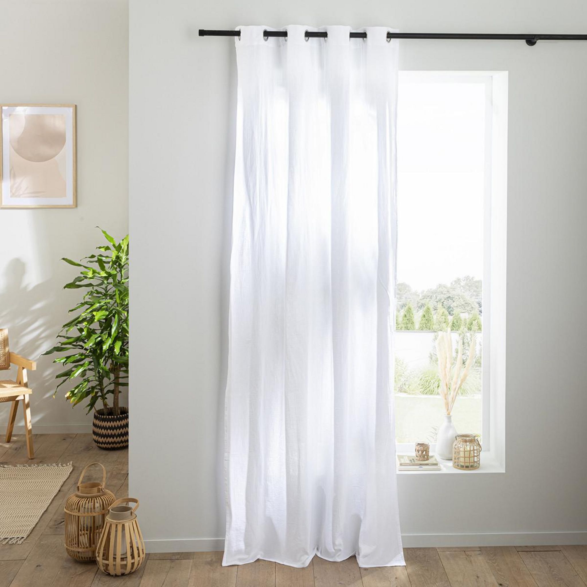 Rideau en gaze de coton vendu à l'unité, monté sur œillet en métal 140x260. Légèrement opaque, ce rideau tombe parfaitement. Un rideau monté sur œillets passe tringle pour une installation facile sur la barre à rideaux.