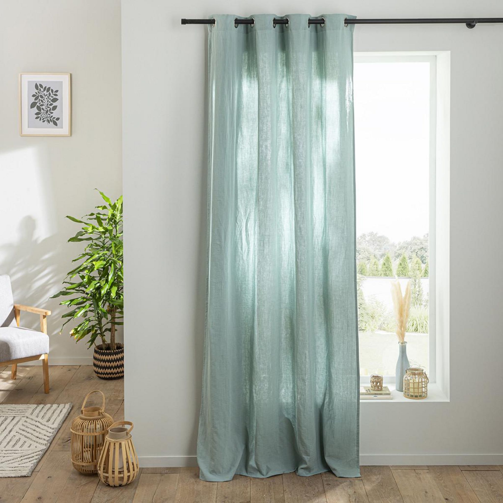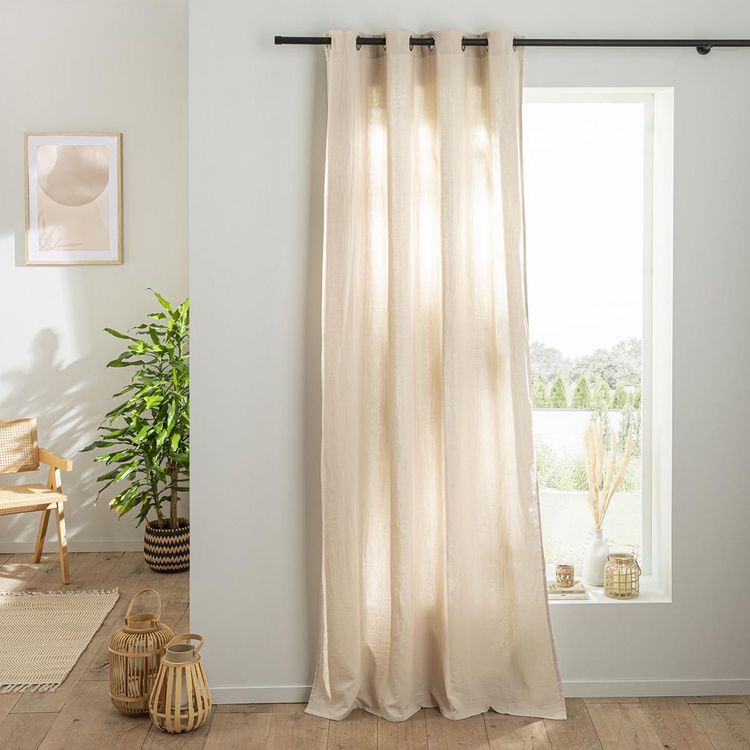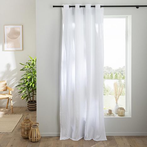 Rideau en gaze de coton vendu à l'unité, monté sur œillet en métal 140x260. Légèrement opaque, ce rideau tombe parfaitement. Un rideau monté sur œillets passe tringle pour une installation facile sur la barre à rideaux.