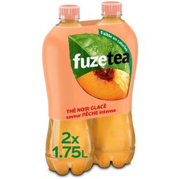 Boisson rafraîchissante aux extraits de thé saveur pêche avec sucre et édulcorant.