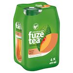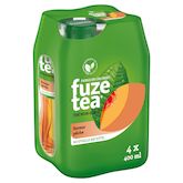 Boisson rafraîchissante aux extraits de thé saveur pêche avec sucre et édulcorant.