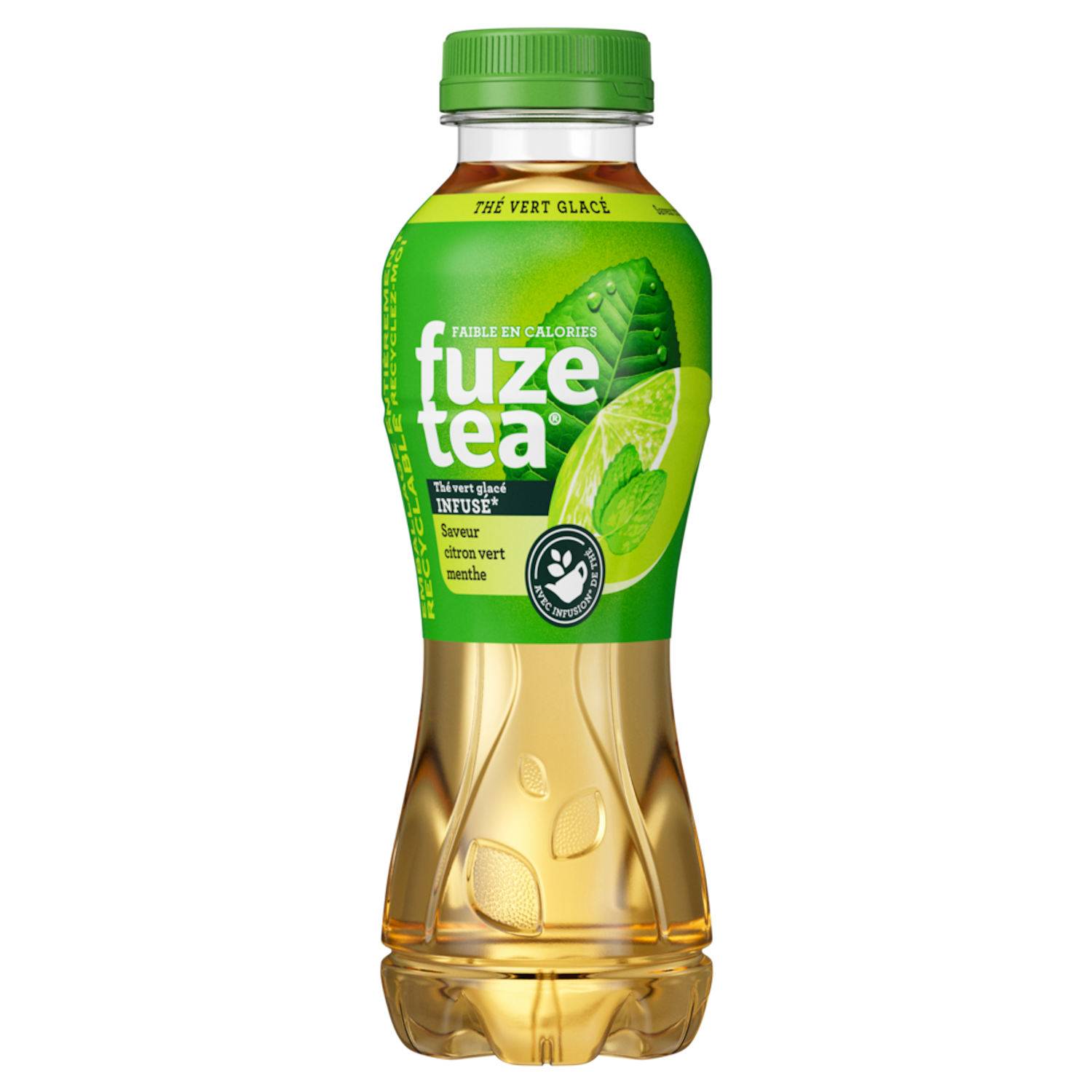 Prenez une minute pour lâcher prise. Savourez chaque gorgée et laissez-vous envahir de plaisir. FUZE TEA saveur Citron vert Menthe vous aide à vous rafraîchir. Continuez à explorer. Avec un savoureux goût fruité, de délicieuses notes de plantes et de l’infusion de thé vert concentrée issu du développement durable*, FUZE TEA saveur Citron vert Menthe est parfait pour accompagner une pause relaxante. Ouvrez simplement une bouteille et savourez ce délicieux thé glacé faible en calories.FUZE TEA, un monde de fusion(voir les notes)