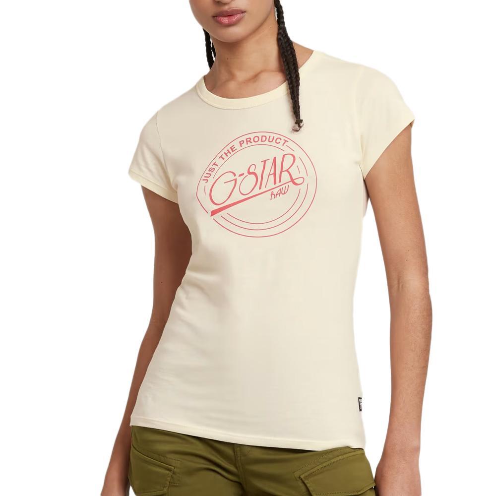 T shirt Ecru Femme G Star Raw arge ogo