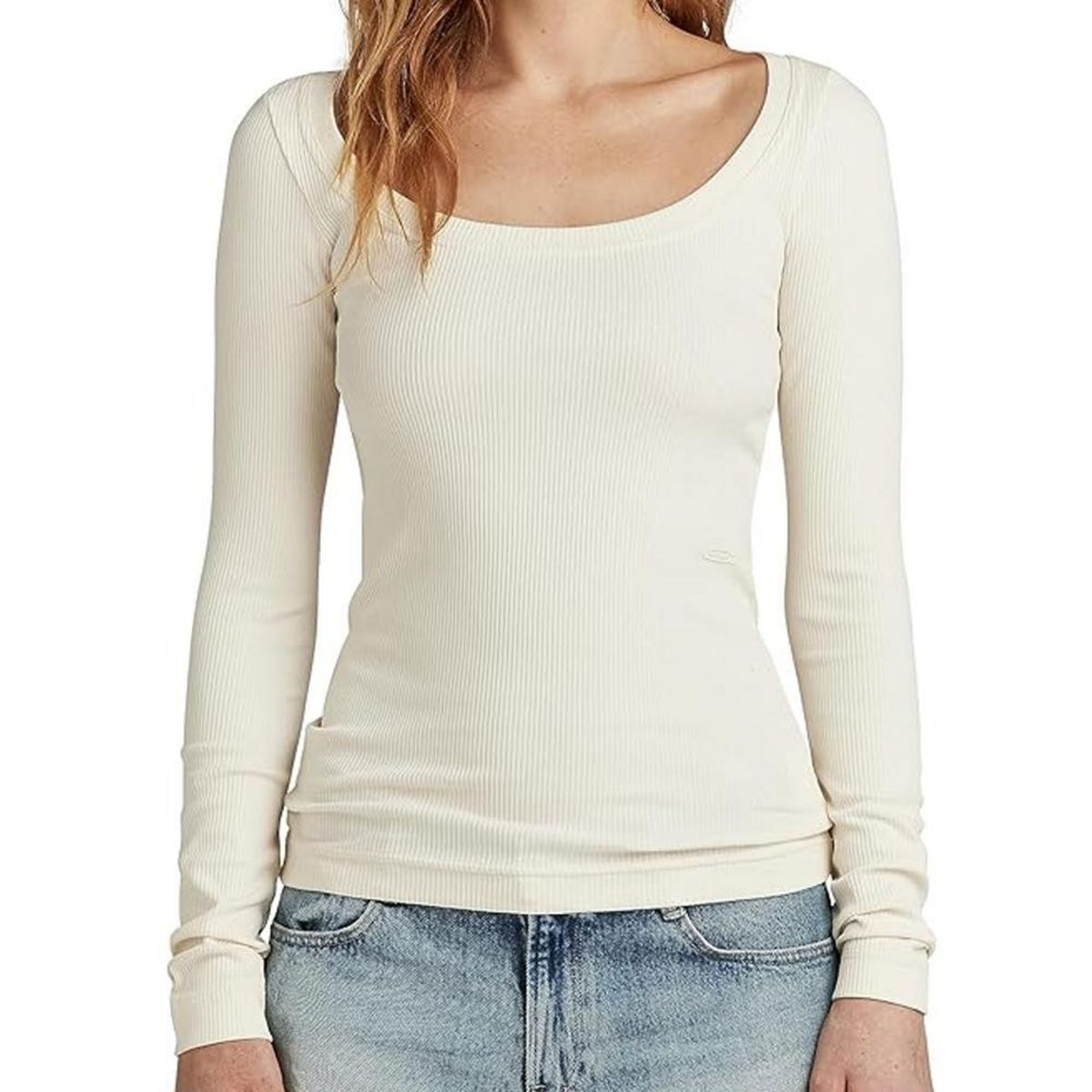 Optez pour ce t-shirt de la marque G-Star- Coloris : Écru- Col rond- Manches longue- Composition : 95% Coton Oco, 5% Élasthanne