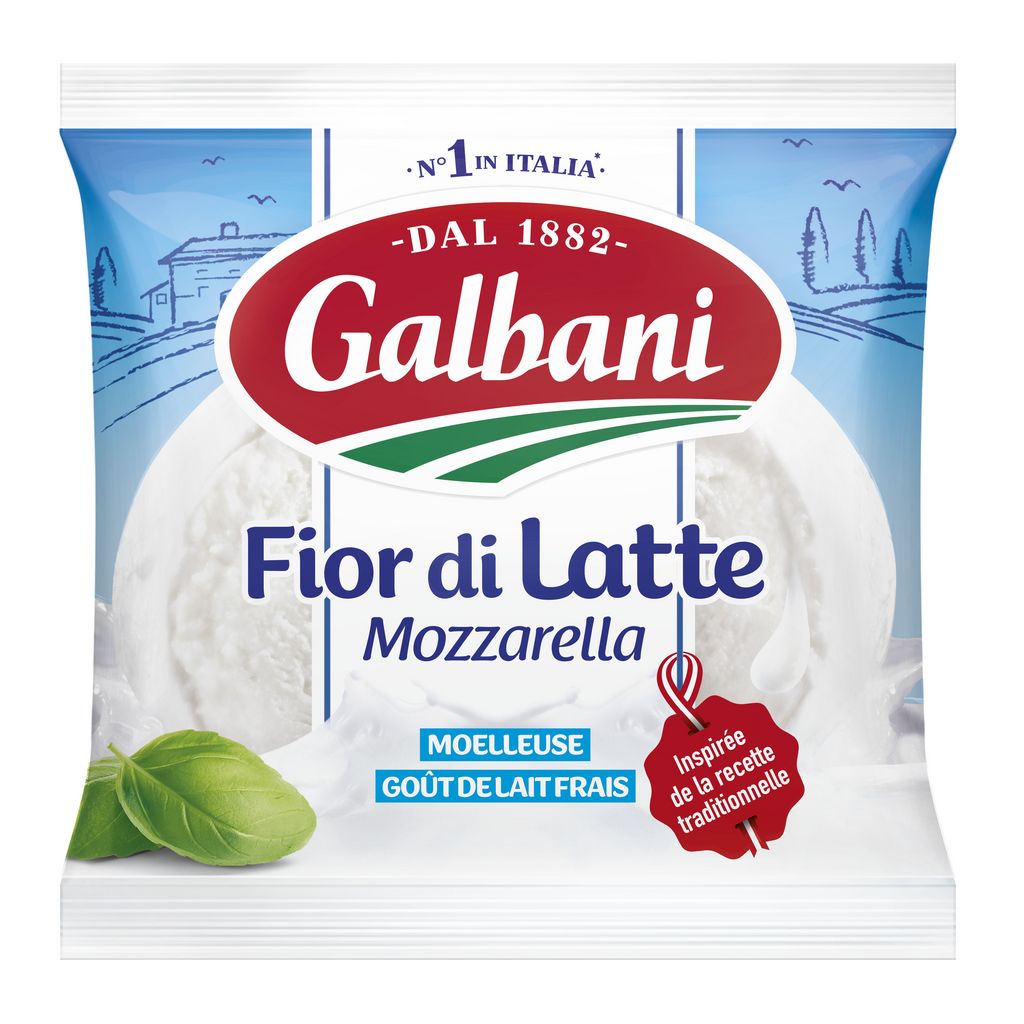 Goût et tradition ! Découvrez la mozzarella italienne FIOR DI LATTE avec son goût de lait intense. La boule 125g Galbani Selezione est idéale pour composer avec originalité vos salades et apéritifs, vos bruschettas ... Lait garanti 100% italien.