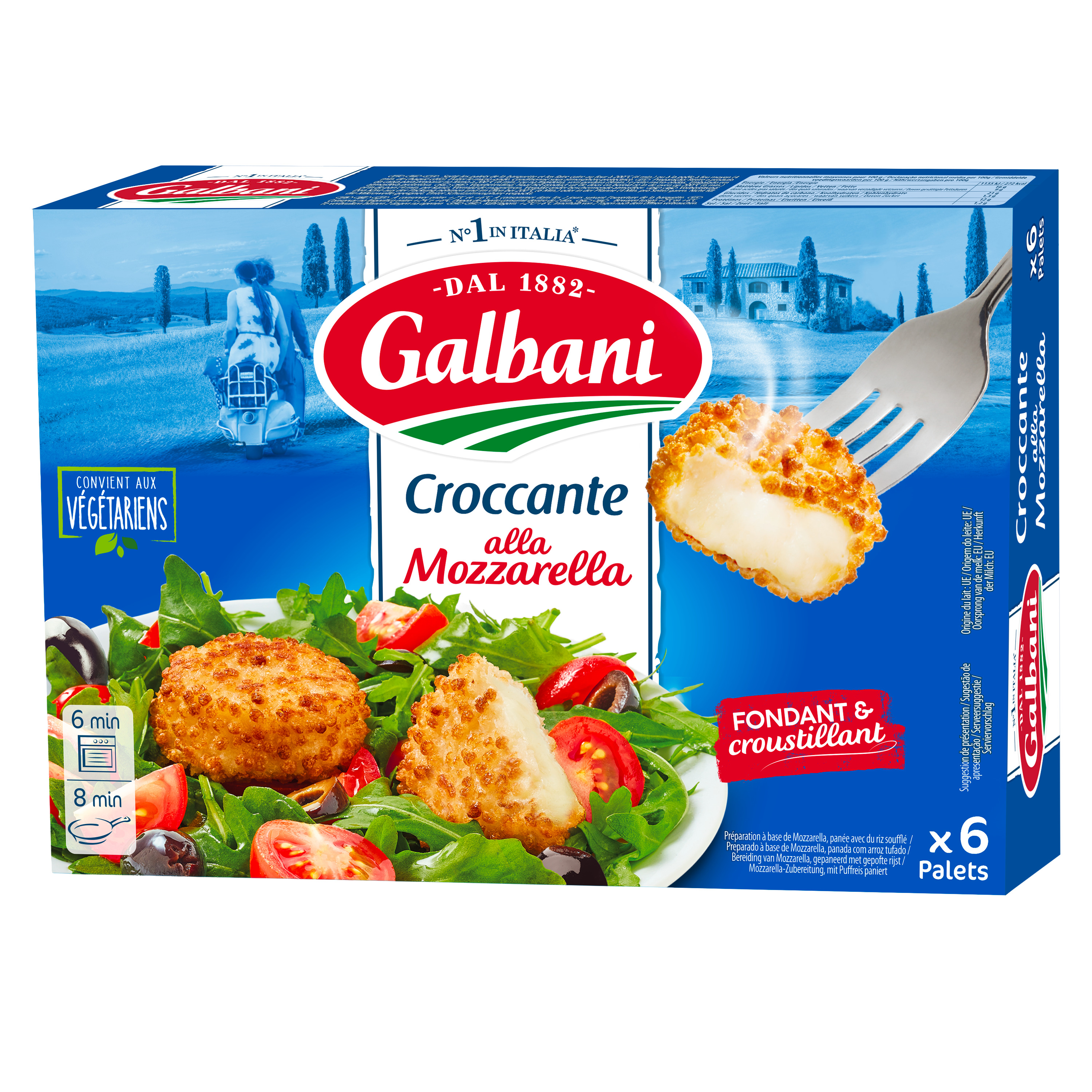 Découvrez Croccante alla Mozzarella Galbani, de délicieux palets de mozzarella panés fondants et croustillants à chaud pour apporter de la gourmandise à vos salades! Fondez pour son cœur à la mozzarella et craquez pour sa chapelure de riz soufflé cro