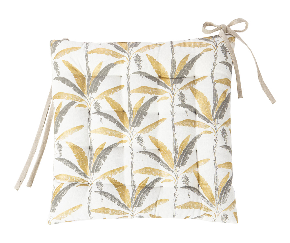 Inspiration végétale et couleurs raffinées, un coussin de chaise pile dans la tendance qui apporte un vrai "plus déco" au coin repas ! Galette généreusement capitonnée pour un confort maxi et joliment fixée par des nouettes.