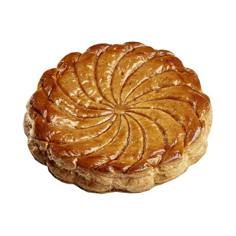 Feuilletage garni de frangipane aux amandes. Ingredients: Galette frangipane (pate feuilletee 62,5% (farine de BLE, BEURRE (LAIT) 33%, eau, sel), frangipane 36,5% (sucre, BEURRE (LAIT) 22,5%, poudre d'AMANDES blanchies 22,5%, OEUFS, LAIT entier, farine de BLE, amidon de BLE, arome naturel de vanille, arome naturel d'AMANDE), dorure). Sirop(sucre, eau). Valeurs nutritionnelles (moyennes pour 100g):Energie 1766kJ/424kcal Matieres grasses 29g dont acides gras satures 16g, Glucides 34g dont sucres 12g, Proteines 7g, Sel 0,6g, CONTIENT UNE FEVE.