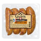 Ingrédients : Viande de porc (93%), sel, LACTOSE, épices, dextrose, antioxydants : acide ascorbique - ascorbate de sodium, plantes aromatiques, conservateur : nitrite de sodium. Boyau naturel de porc. Fumé au bois de Hêtre.