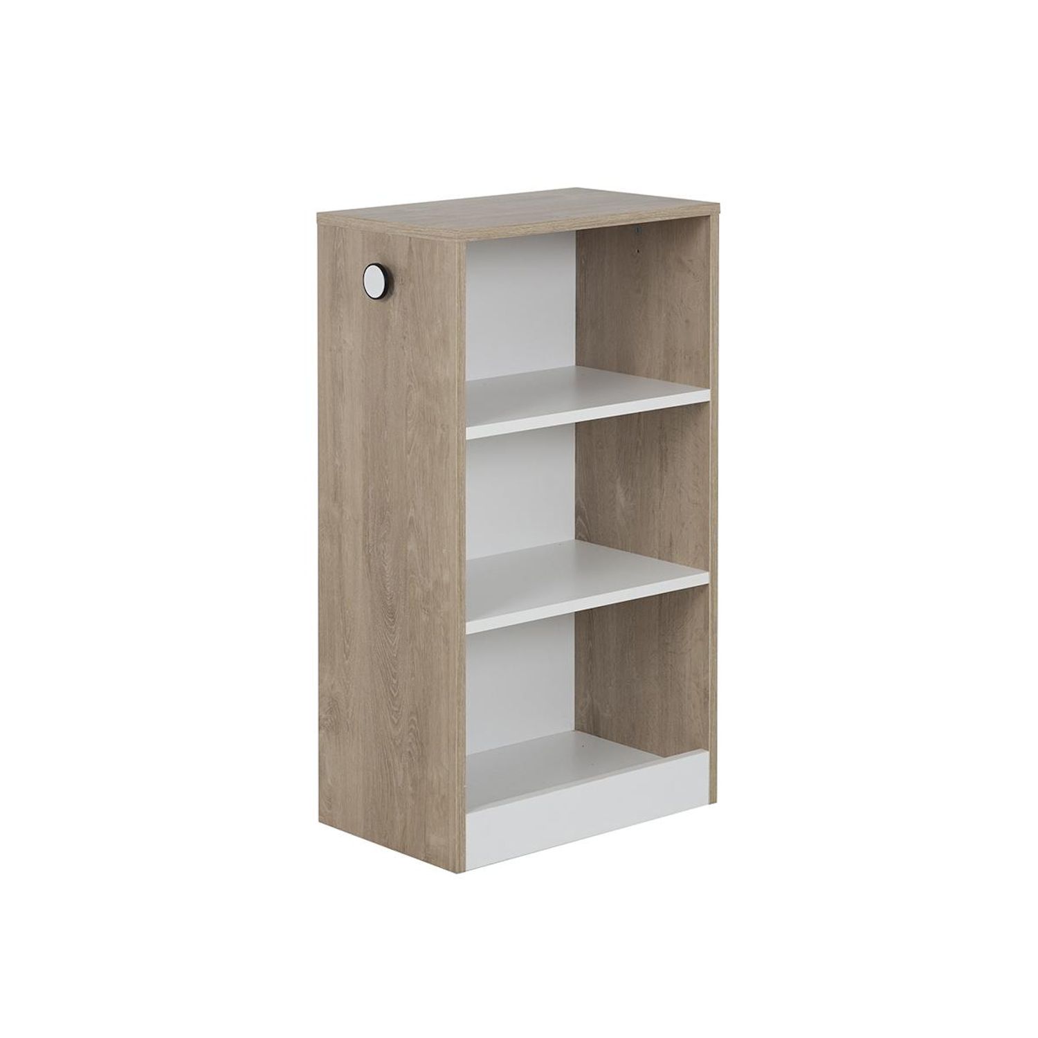 La collection Marcel est à la fois chic et naturelle. Cette chambre au décor chêne blond est soulignée par une structure blanche qui vient la moderniser. Les poignées, blanches également, apportent un aspect ludique par leur forme ronde. La Petite bibliothèque Marcel est munie de: 1 bouton avec 1 patère. 4 roulettes fixes latérales. Composition : Corps et façades : panneaux de particules revêtus papier décor imitation Chêne blond. Certaines façades : avec raînurage et impression numérique. Chants : même décor dont certains soft et certains chants en ABS. Boutons : ABS noir avec insert blanc. Pieds ABS blanc. Dimensions : L.49 x H.88 x P.31 cm.