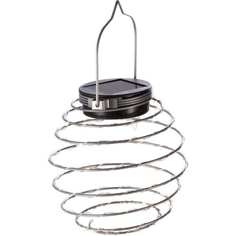 Lot de 2 suspensions spirale a énergie solaire Matiere : métal Nombre de Lumens : 3 Durée maximum d'éclairage : 8 heures Interrupteur on/off LED : 16 Micro-LEDs multicolore (3000K) Batteries rechargeables : 1 x 200mAh Ni-Mh AAA Dimensions produits : (voir le schéma technique parmi les images) H : 182 mm - Ø 120 mm