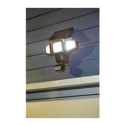 Projecteur/spot solaire - détecteur de présence et panneau solaire déporté - 3 tetes tres éclairantes Matiere : plastique Lumens : 1500 Durée d'éclairage : 30 - 60 - 120 Dist. de détection : 10m max Interrupteur ON / OFF / AUTO 5m de câble entre le panneau sol. et le spot 182 LED SMD blanches 2