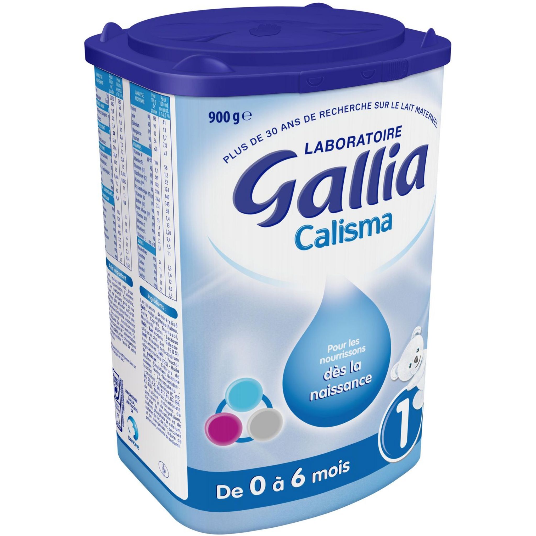 Lait pour nourrissons. Le Laboratoire Gallia a mis au point Calisma 1, une formule quotidienne qui accompagne votre bébé de la naissance jusqu'à 6 mois, lorsqu'il n'est pas allaité, conformément à la réglementation. Calisma 1 contient une association d'ingrédients : - Des prébiotiques qui sont des fibres alimentaires de type FOS/GOS (Fructo-Oligosaccharides et Galacto-Oligosaccharides) - Des omégas 3 (DHA : acide docosahexaénoïque).
