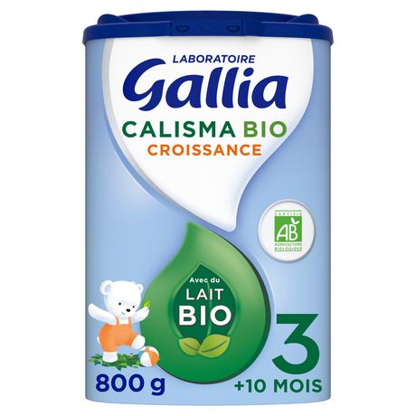 CALISMA BIO CROISSANCE allie l'expertise du Laboratoire Gallia aux exigences de l'agriculture biologique. S'appuyant sur 50 ans de recherche sur le lait maternel, le Laboratoire Gallia a conçu cette formule contenant 24 x PLUS DE FER que dans le lait de vache qui contribue à couvrir les besoins nutritionnels spécifiques de votre bébé dès 10 mois lorsqu'il n'est pas allaité. (Par rapport au lait de vache demi-écrémé UHT, Anses, Ciqual, 2020. Dans le cadre d'une alimentation variée et équilibrée, le lait de vache n'est pas encore tout à fait adapté aux besoins nutritionnels spécifiques des jeunes enfants de 1 à 3 an)