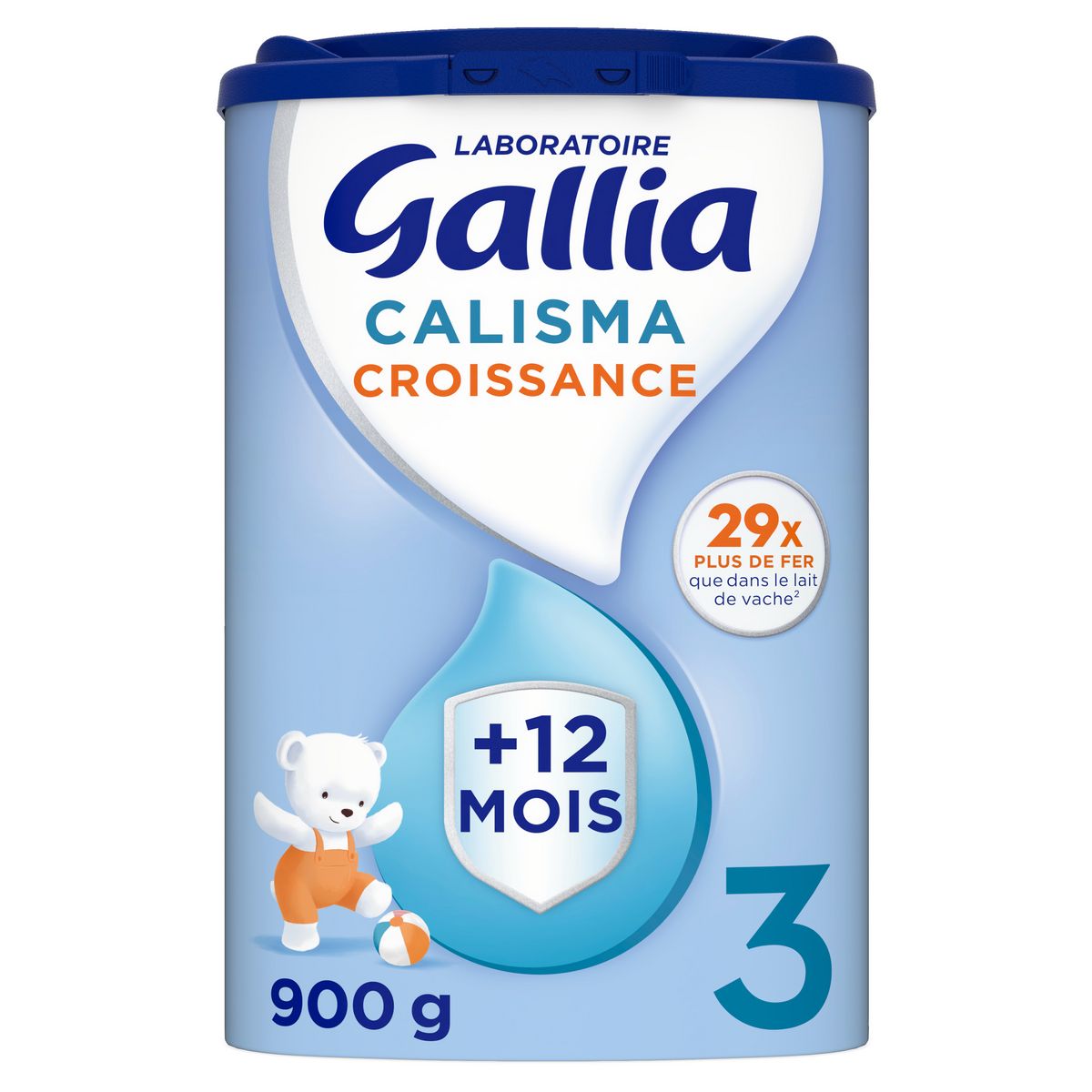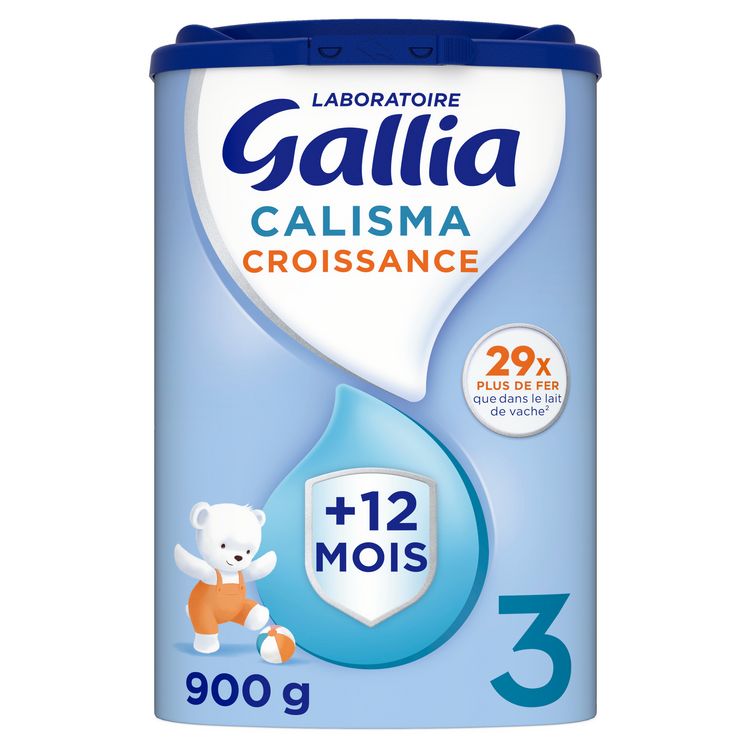 S'appuyant sur 50 ans de recherche sur le lait maternel, le Laboratoire Gallia a conçu CALISMA CROISSANCE qui contient 29 x PLUS DE FER 1 , 13 x plus de Vitamine D 2 pour contribuer au bon fonctionnement du système immunitaire (*) et 17 x plus d'Acides Gras Essentiels 2 qui contribue au développement normal du cerveau (**), que dans le lait de vache. Dans le cadre d'une alimentation variée et équilibrée, le lait de vache n'est pas encore tout à fait adapté aux besoins nutritionnels spécifiques des jeunes enfants.