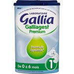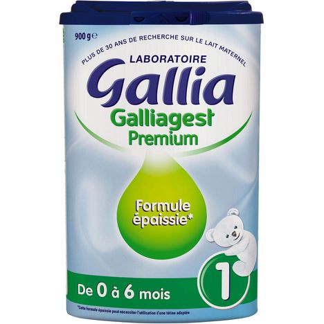 Aliment lacté en poudre destiné aux enfants en bas-âge Le Laboratoire Gallia a mis au point Galliagest Premium 1, une formule épaissie pouvant nécessiter l'utilisation d'une tétine adaptée. Galliagest Premium 1 convient qui convient à l'alimentation particulière du nourrisson non allaité de la naissance à 6 mois, conformément à la réglementation. Cette formule contient des AGPI-LC* (DHA : Acide Docosa-Hexaénoïque). Elle vous a été conseillée par votre médecin : ne l'interrompez pas sans lui demander conseil. * Acides Gras Poly-Insaturés à Longue Chaîne.