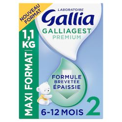GALLIAGEST PREMIUM 2 accompagne votre bébé au quotidien, de 6 mois jusqu'à 1 an, lorsqu'il n'est pas allaité. S'appuyant sur 50 ans de recherche sur le lait maternel, le Laboratoire Gallia a développé cette formule épaissie (peut nécessiter l'utilisation d'une tétine adaptée) pour accompagner bébé et contribuer à répondre à ses besoins nutritionnels spécifiques, conformément à la réglementation, dans le cadre d'une alimentation diversifiée.
