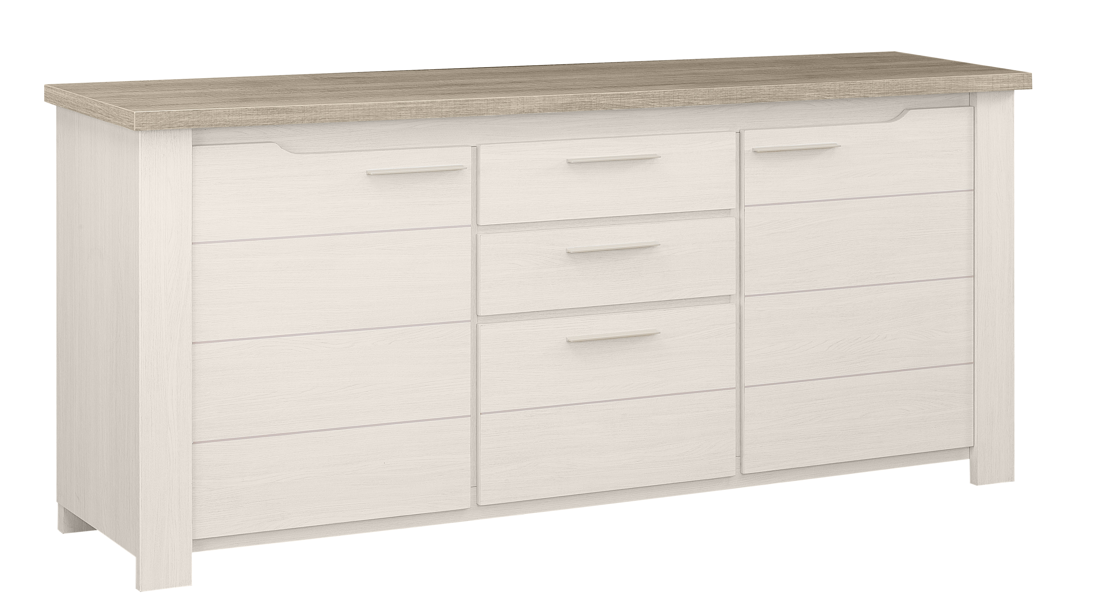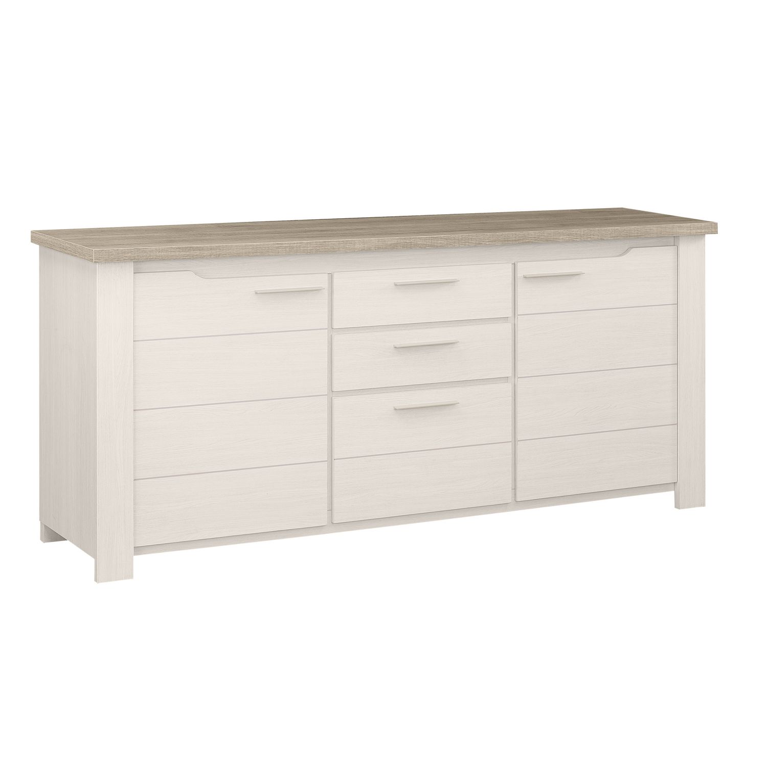 Le buffet Florence vous apportera rangement et design tout en gardant le style authentique d'un meuble intemporel. Le doux coloris frêne blanchi associé au plateau à l'effet chêne structuré sont des atouts essentiels dans la qualité et l'esthétisme de cet élement aux nombreux rangements. En effet, il est muni de deux portes et de trois tiroirs pour y stocker tout ce que vous souhaitez.