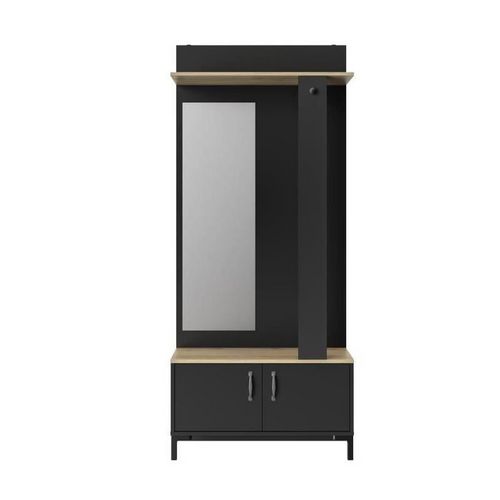 GAMI Meuble dentree 2 portes - Made in France - Decor chene sonoma et noir - L 81 x H 190 x P 37 cm - STORE