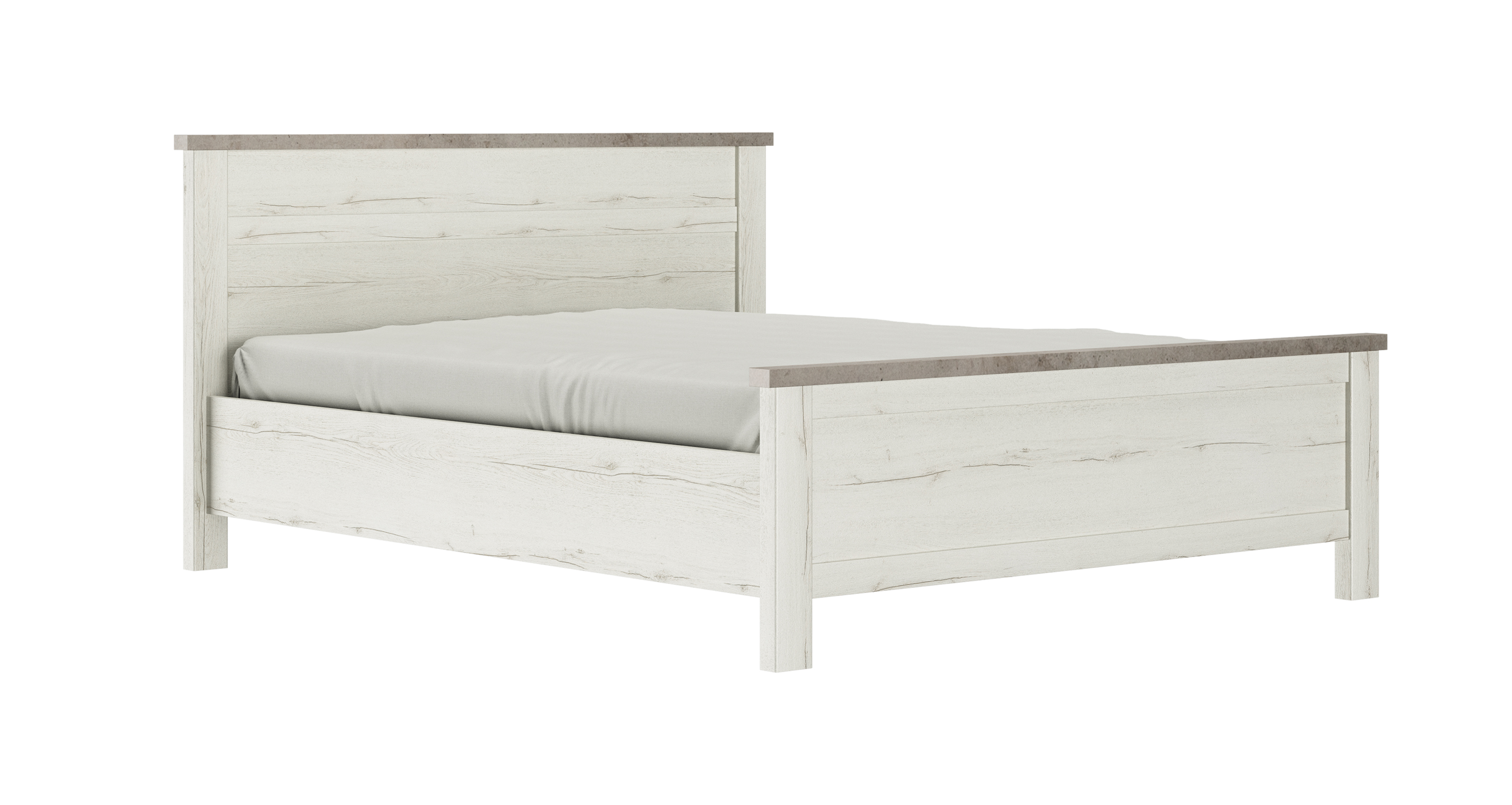 Meuble fabriqué en France, Existe en plusieurs dimensions de couchage, Tête et pied de lit réhaussés par une main courante en décor béton