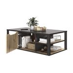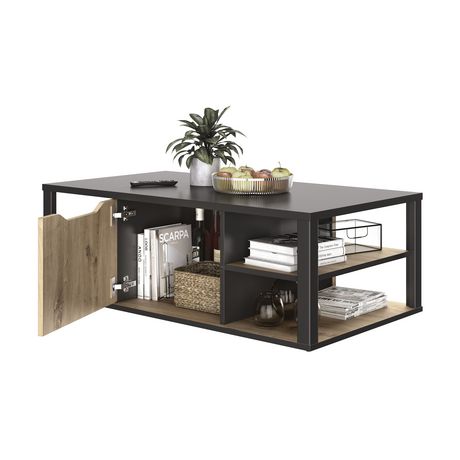 Table basse style industriel avec coffre central et étagères NEWTON
