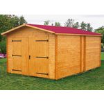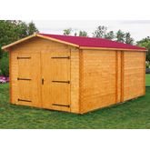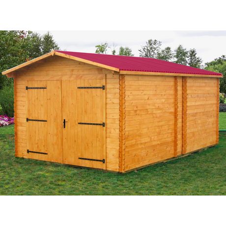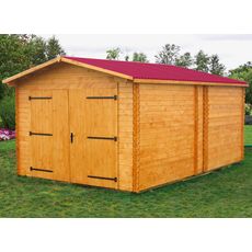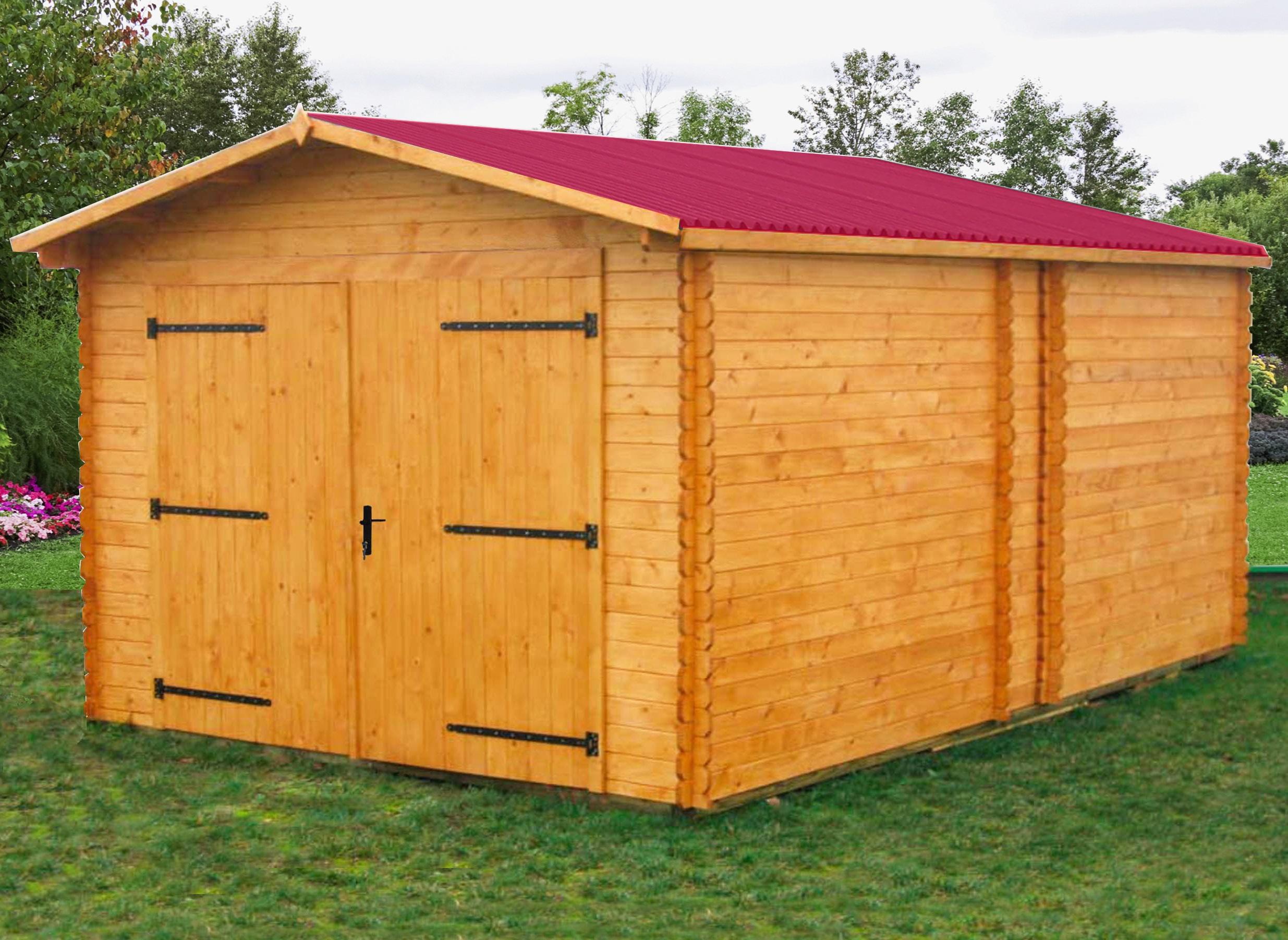Garage Madriers bois massif / 28 mm / surface extérieure : 20,97 m2 / toiture plaques ondulées plus grande longévité / Fabriqué en EUROPE