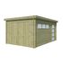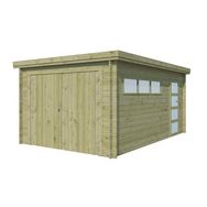 Les portes sont munis de serrure en inox avec cylindre intégrée. Les fenêtres en plexi opaque apportent une touche esthétique à l'édifice. Le bois dont est constitué l'abri est un bois naturel en épicéa du nord. La toiture est en bac acier avec feutre anti-condensation intégré.