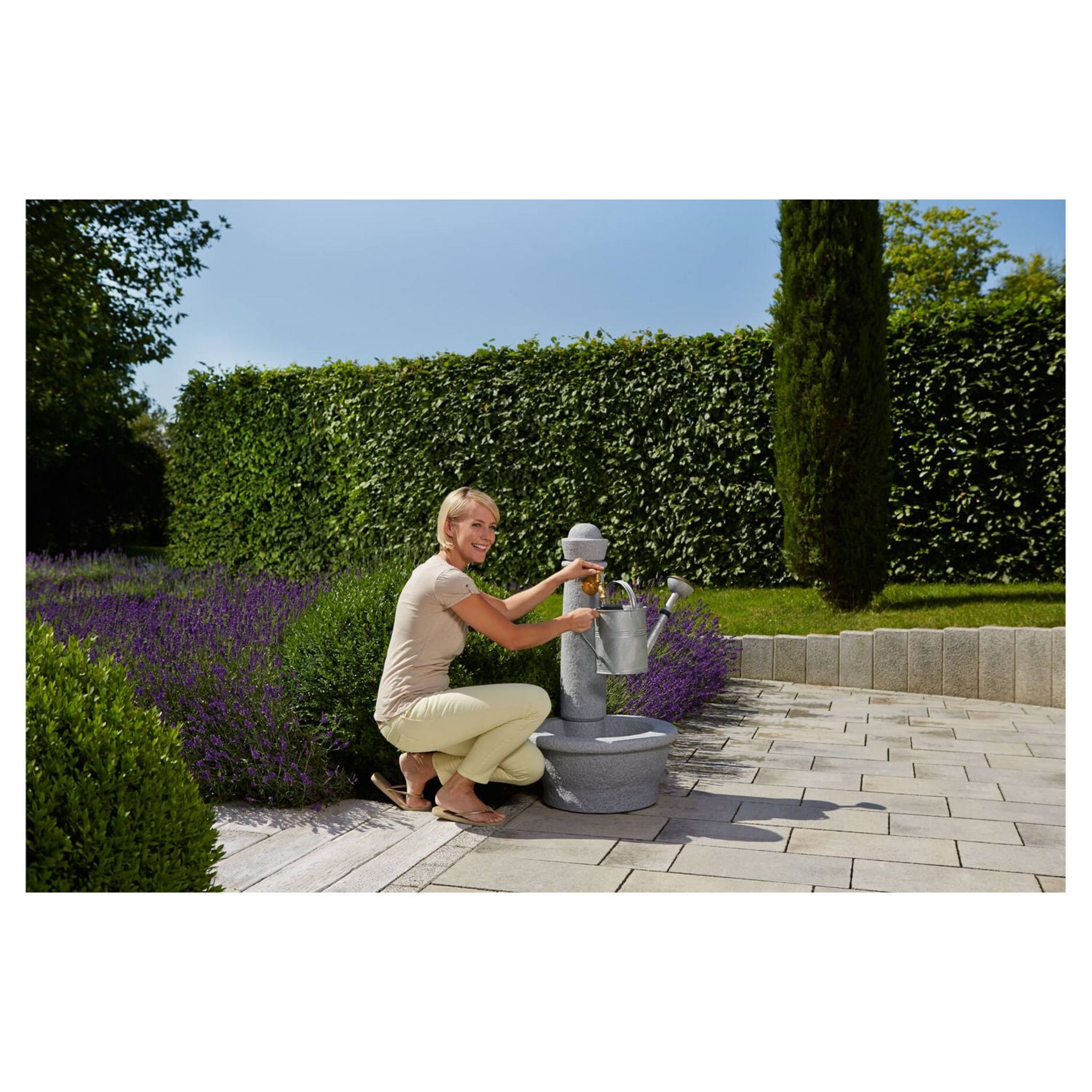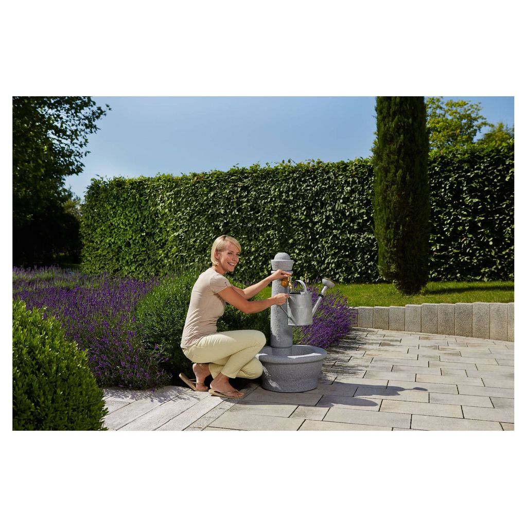 Alliant le style italien et la beauté de la pierre naturelle, la fontaine ROMA constitue un formidable point d’eau dans son jardin. Aspect pierre naturelle- Permet d’avoir un point d’eau à n’importe quel endroit du jardin- Vasque intégrée permettant de stocker l’eau (nettoyage accessoires jardin, légumes ...)- Robinet Nostalgie : véritable robinet gargouille de haute qualité déjà monté sur la fontaine