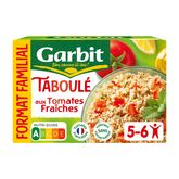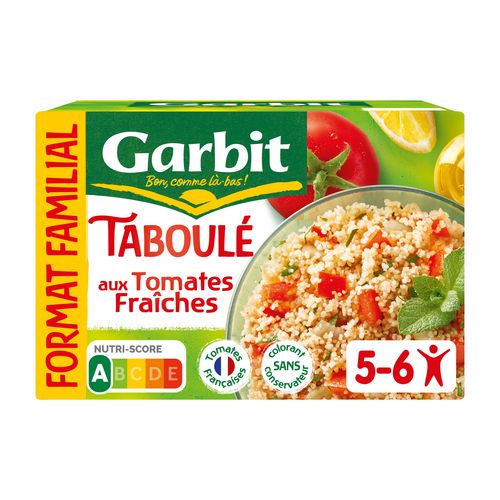 Destination Gourmandise en 5 min Découvrez toute la fraîcheur du Taboulé aux tomates fraîches Garbit : De la menthe, un filet d'huile d'olive et du citron, pour un savoureux mariage des saveurs ! Versez la semoule dans un plat creux. Ajoutez la garniture et une cuillière à soupe d'huile d'olive puis mélangez (ne pas faire cuire, ne pas ajouter d'eau). « Picto réfrigérateur 30 minutes» Placez au réfrigérateur 30 minutes avant de servir. Pour encore + de plaisir, ajoutez des poivrons rouges et des cubes de concombre