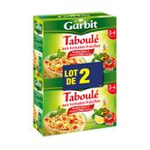 1 boîte de garniture 400 g : tomates fraîches 60 %, eau, oignons, poivrons, menthe 1,8 %, huile d'olive vierge extra 1,2 %, sel, persil, jus de citron concentré 0,5 %, jus d'orange concentré, extrait de poivre. (Pourcentages exprimés sur la garniture). 1 étui de semoule de BLÉ dur précuite à la vapeur 125 g.