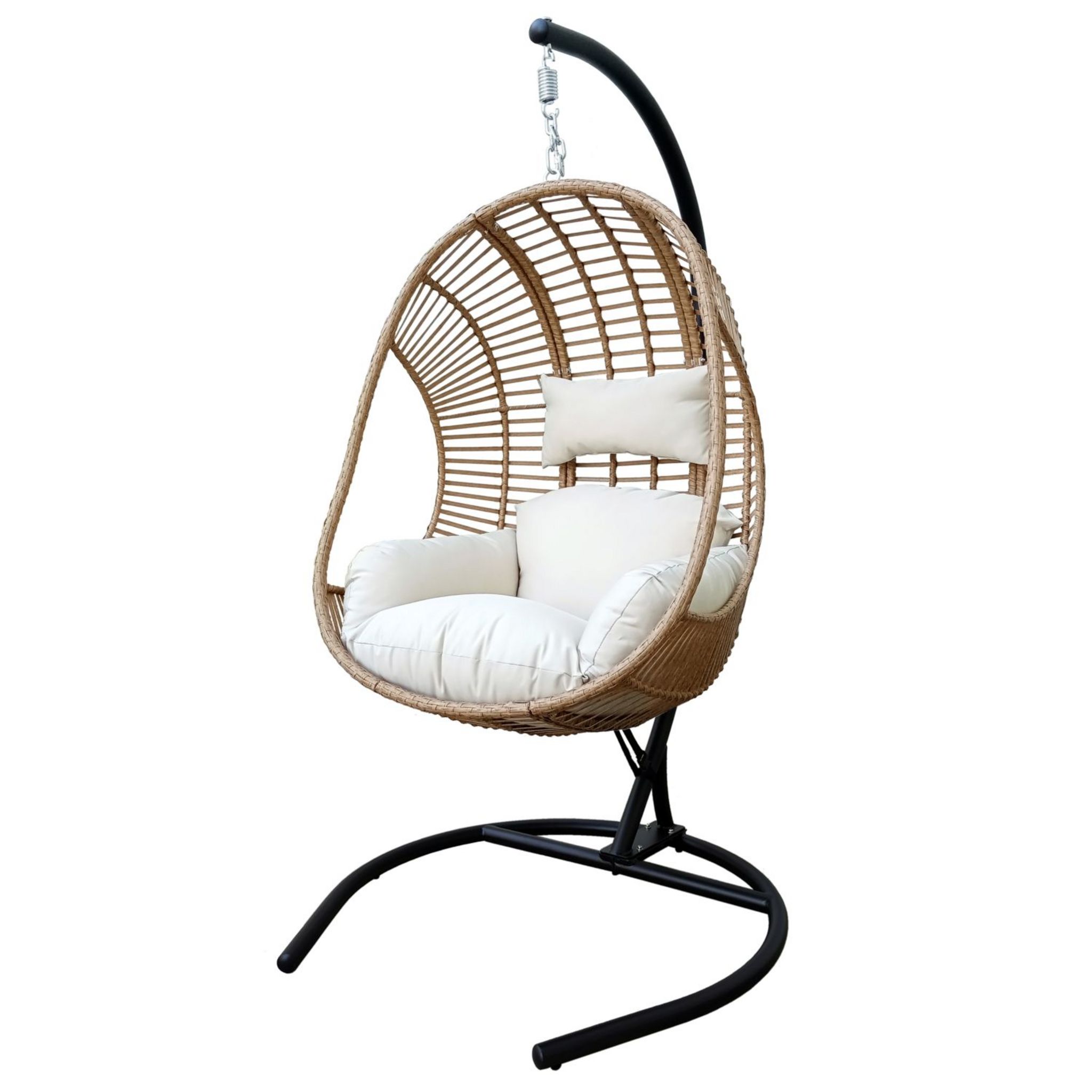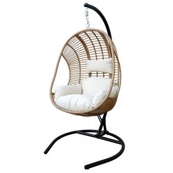 Fauteuil oeuf suspendu - Rotin et acier - Blanc et marron