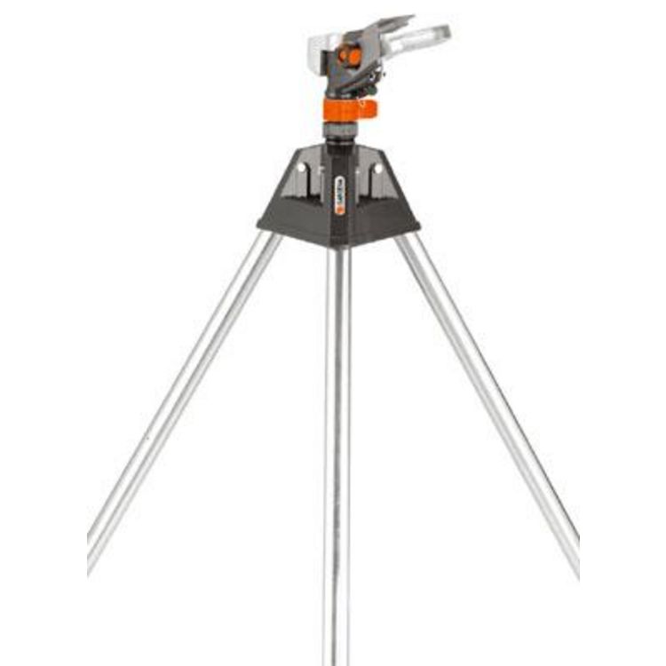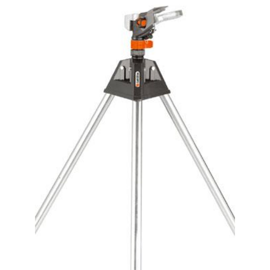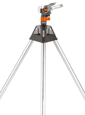 L',arroseur-canon en hauteur équipé d',un trépied pliable est une aide robuste pour arroser les plantes les plus hautes.