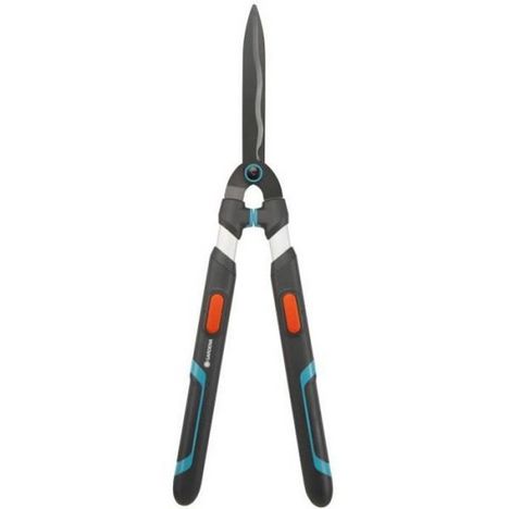 La cisaille a haies EasyCut GARDENA est un outil de qualité supérieure pour tailler les haies larges et hautes. Elle est équipée de manches télescopiques ultra-confortables en fibres de verre renforcées et de lames ondulées en acier de haute qualité recouvertes d'un revetement anti-adhérent. Les butées amortisseur limitent les chocs au niveau des poignets.